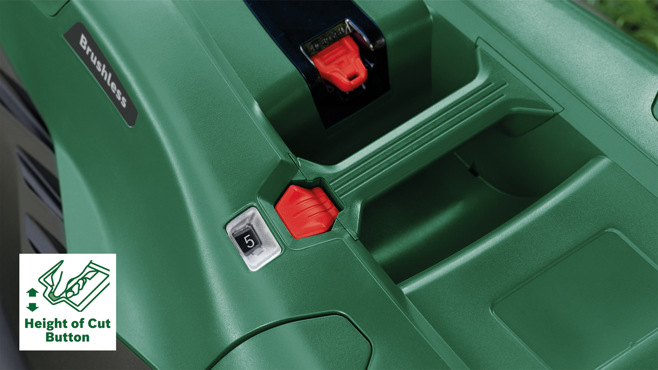 Customizable Cutting: Switch between 7 different height settings (25 mm to 80 mm) at the push of a button to suit your lawn’s needs.