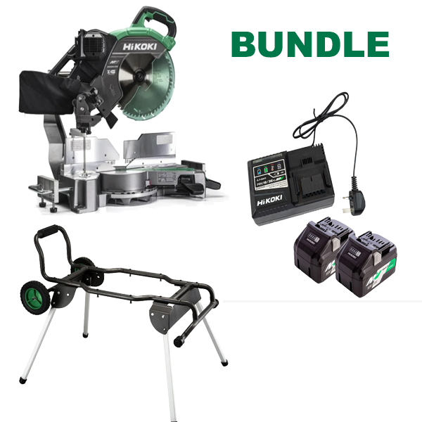 HiKoki 305mm 36v Cordless Mitre Saw Kit (2 x 4/8ah) + Stand Kit