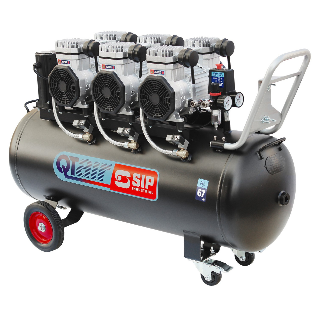 The SIP QT AIR DD 4.5hp 150ltr Ultra Low Noise Oil-Free Direct Drive Compressor is a powerful and innovative ultra low noise compressor which features slow-running 4-pole motor pump units for up to 50% longer working life compared to standard SIP 2-pole motor air compressors.